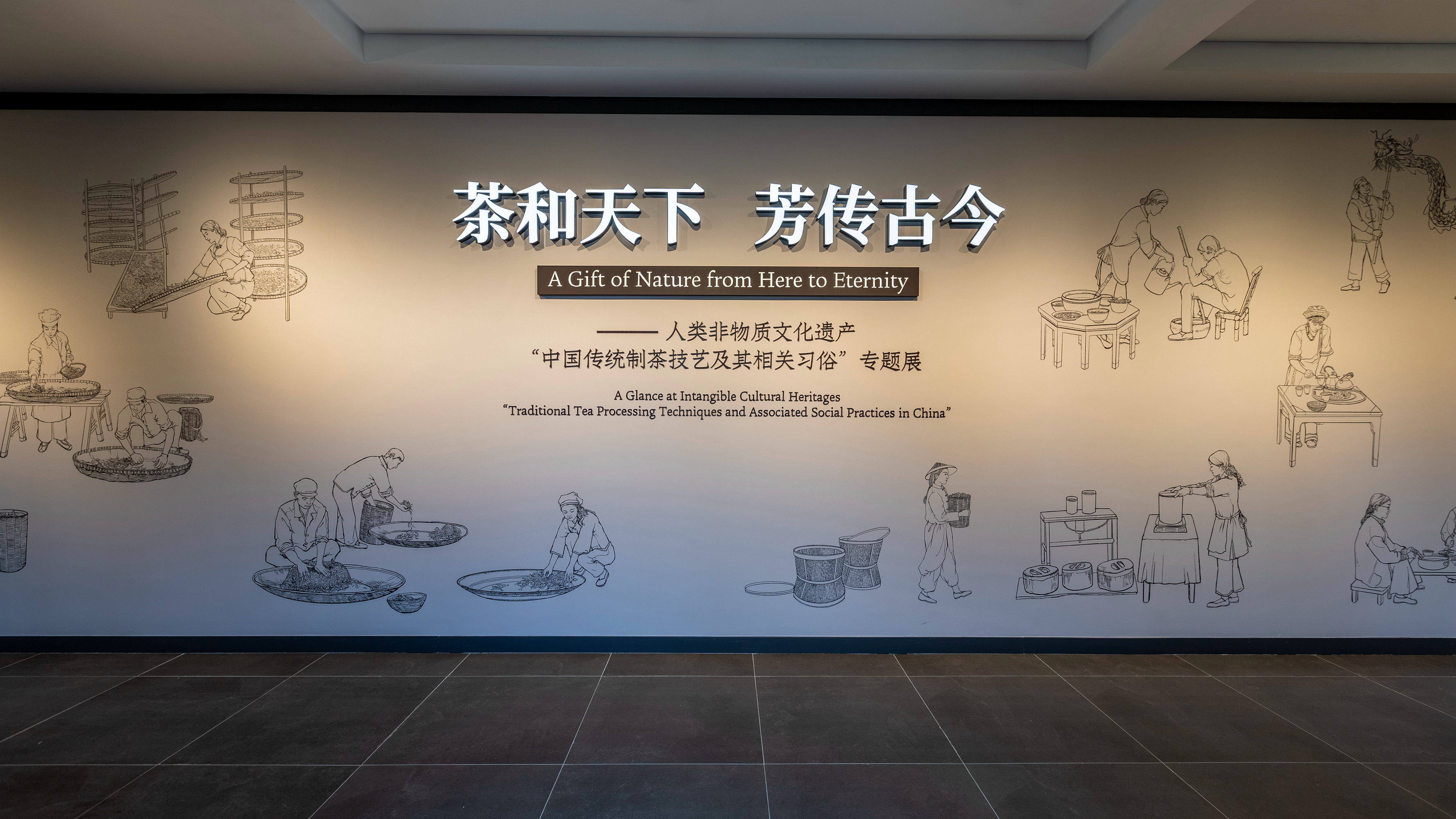 “茶和天下 芳传古今——中国传统制茶技艺及其习俗非物质文化遗产展”鉴于“中国传统制茶技艺及其相关习俗”成功列入联合国教科文组织的人类非物质文化遗产代表作名录 的契机,以图文、多媒体视频、实物器具等方式全方面展示该遗产项目的深刻内涵,并设立民俗体验街区、非遗技艺体验区,以促进该遗产项目深入群体和社区。